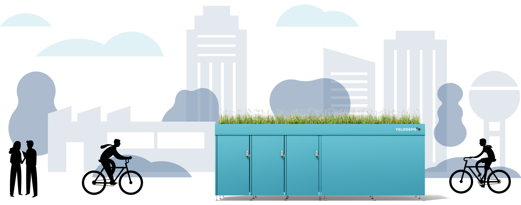 Ihre Mitarbeitenden wollen sichere und wettergeschützte Fahrradunterstände für Jobbikes oder private Räder. Im VELODEPO finden 2 bis 8 Fahrräder einen Abstellplatz. Die einzelnen Garagen bieten Platz für das komplette Fahrradzubehör und können optional mit einem Ladeanschluss für E-Bikes ausgestattet werden. Das elektronische Schließsystem hingegen funktioniert auch ohne Stromanschluss und ermöglicht es Ihnen, die Garagen per App unkompliziert an einzelne Mitarbeitende zu vergeben, zu verwalten – oder sogar zum Mikrodepot umzufunktionieren.